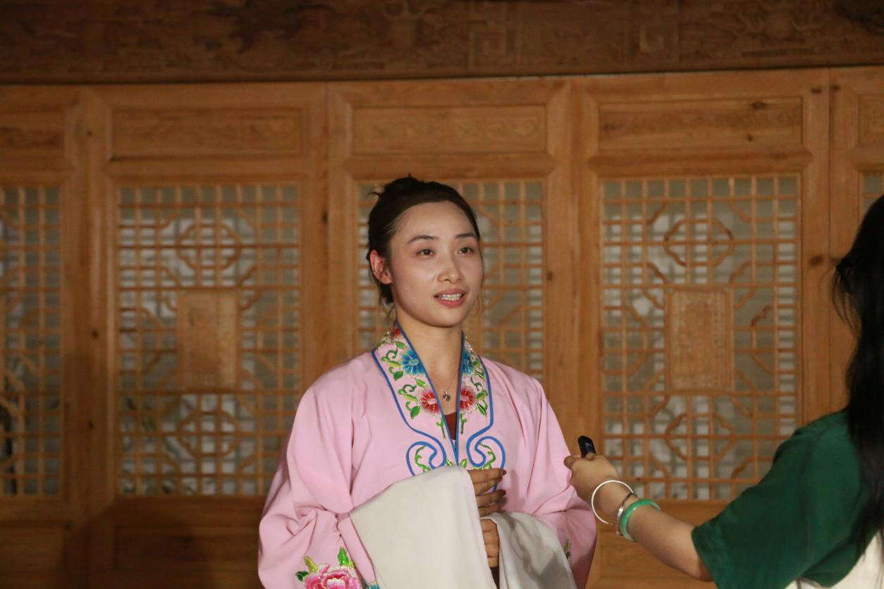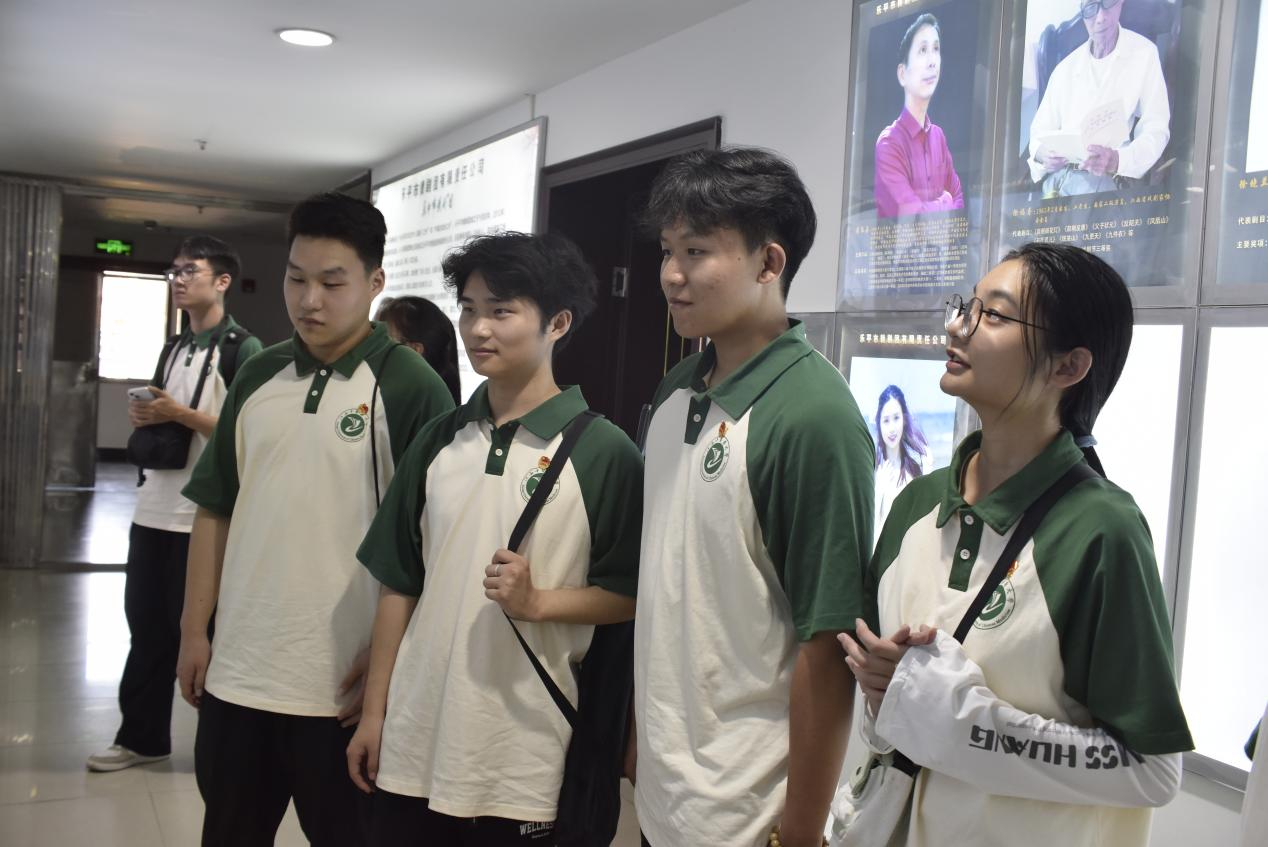 随后,实践队员们有幸采访到了国家二级演员、“乐平腔”景德镇市级非遗传承人胡海栋先生和两位优秀青年演员刘瑛、邹文磊。“戏曲是以声传情,按中医的说法就是讲究精气神的统一。在吊嗓子的过程中,呼吸吐纳,借鼻音而串脑后音引起共鸣,牵引气的运转。”胡海栋先生深入浅出,耐心地回答实践队员们的问题。在一问一答间,实践队员们从学习到了许多戏曲相关的知识,并将其与专业知识相结合,从戏曲的角度多元地领悟中医基础知识。