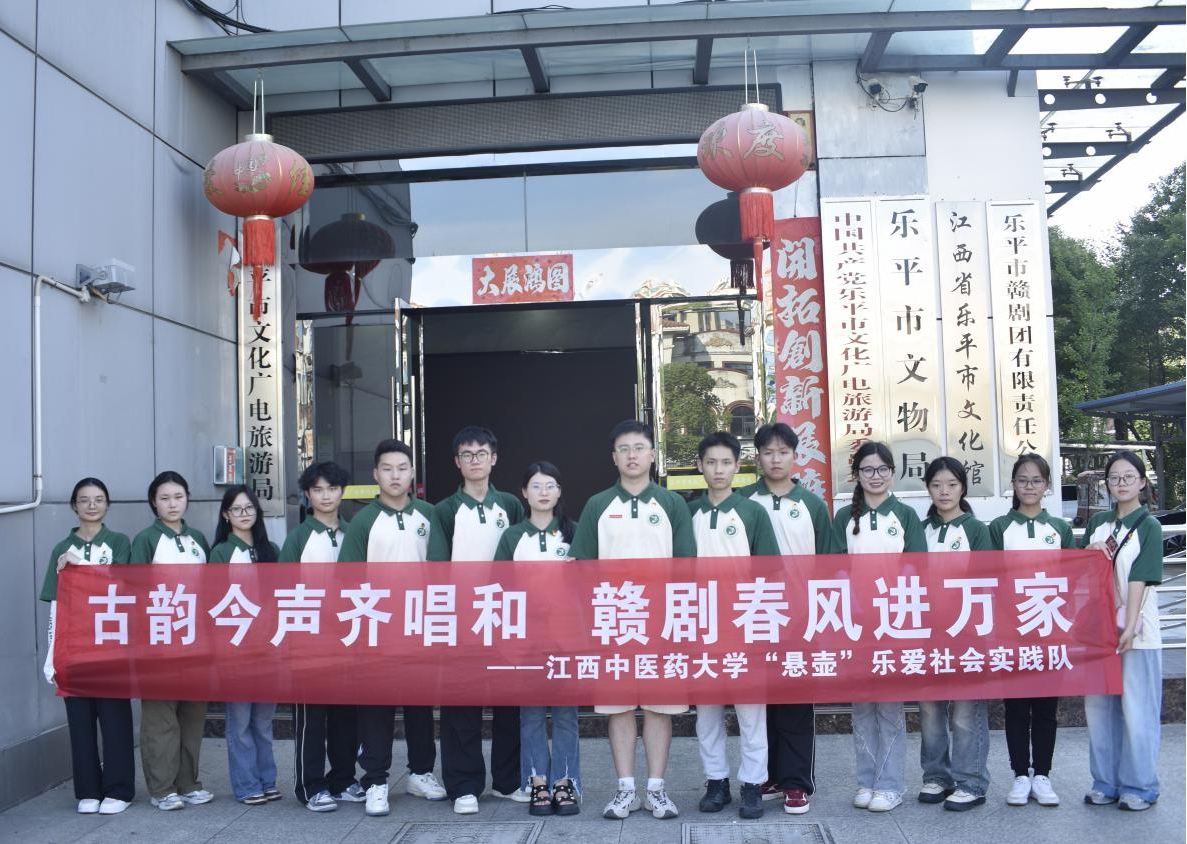 赣剧雅韵,一曲千年风华梦,唱尽赣鄱古韵情。6月30日,江西中医药大学“悬壶”乐爱社会实践队前往乐平市赣剧团有限责任公司和乐平市老北街赣剧楼开展暑期“三下乡”社会实践活动,跨越时间长河,在激越唱腔和灵动身姿间,感受赣剧千年风华。