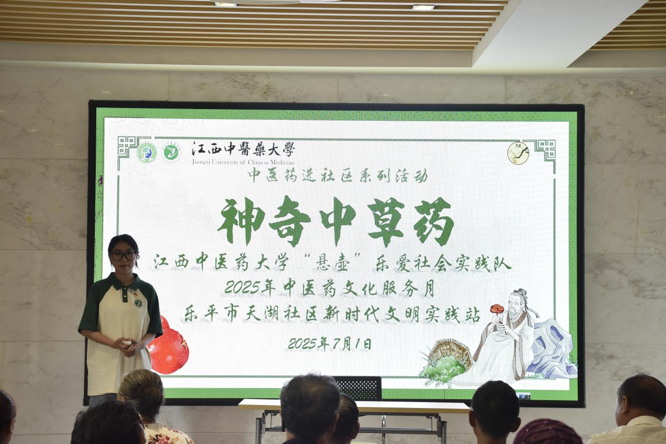 期间,实践队员们在社区内四处走访,开展乐平市基层医疗、推广普通话、养老互助模式和网络安全等主题问卷调研。“爷爷,你之前有没有体验过中医的治疗啊?”实践队员们拿出问卷,身体微微前倾,从个个方面耐心地询问他们的基本情况。在洎阳街道天湖社区,实践队员们还向居民们宣讲中医药文化知识,带领居民们认识中草药。