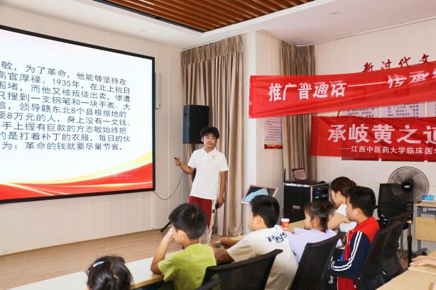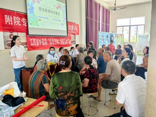在安义县龙津镇东门社区的宣讲活动室里,展开了一场《承岐黄之道,扬红医之魂》为主题的红色宣讲活动。主讲人从革命精神出发,将伟大的建党精神和红医精神相结合,跟大家讲到:“今天是七一建党节,我们一起缅怀方志敏烈士,学习方志敏精神,重温方志敏同志用生命书写信仰的篇章。他在清贫与生命间的抉择,正是红医“人民至上”初心的鲜活体现。……”除此之外,队员还讲述了中医药在红色文化中的传承等,最后,与现场人员齐声诵读《可爱的中国》,共同体会母亲大地的每寸土地跳动着的“活跃跃的创造”,体会百年前烽火中的信仰,化作今日乡村振兴的星火!
