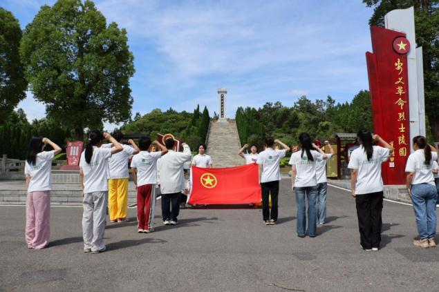 松柏苍翠,肃穆无言。7月1日,在这个镌刻着信仰光芒与民族希望的日子,江西中医药大学“青仁知行”社会实践队全体成员,带着沉重的心情步履庄重地走进安义革命烈士陵园缅怀先烈,铭记初心使命,凝聚奋进力量。全体人员瞻仰烈士墓碑,深入了解当地革命史,向英雄先烈们鞠躬默哀,深切缅怀。队员们面向党旗、团旗重温入党誓词、入团誓词,“我志愿加入……” 领誓的声音如金石掷地,骤然划破陵园的肃穆。全体师生右拳紧握,臂膀如林,面向鲜红的党旗与团旗,将滚烫的誓言一字一句刻入苍穹。一字一句,掷地有声,既是对入党、入团初心的回顾,更是对新时代青年使命担当的庄严承诺。