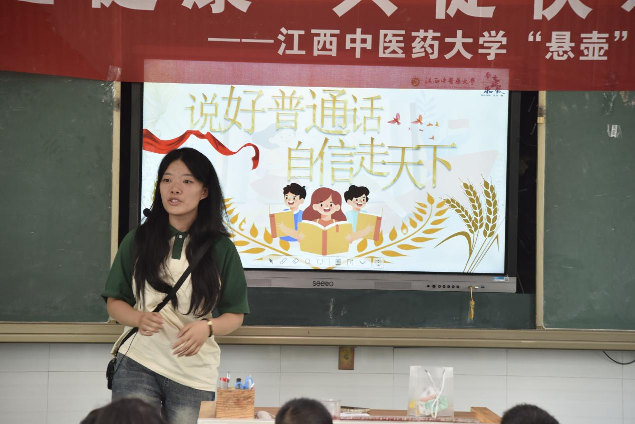 关爱儿童健康,共促快乐成长。为加大国家通用语言文字推广力度,让孩童说好普通话,了解中医药文化,江西中医药大学“悬壶”乐爱社会实践队的队员们前往乐平市第六小学,将中医药文化知识、普通话和八段锦带到三年级小学生的课堂,让孩子们进行相关知识的了解和学习,共建快乐童年。