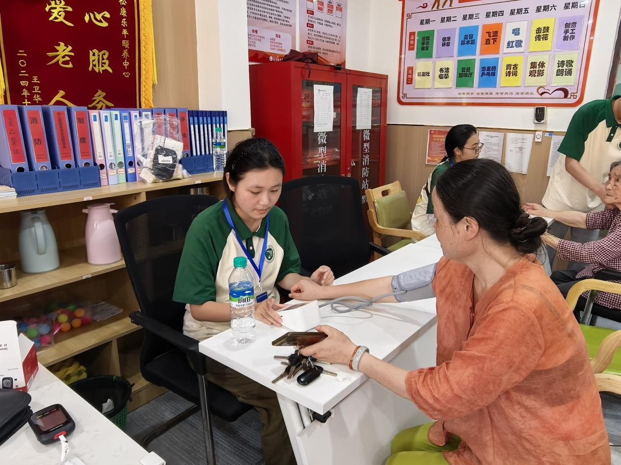 江西中医药大学“悬壶”乐爱社会实践队联合金瓶梅电影 专家,先后走进长天松康乐平颐养中心和洎阳街道天湖社区,开展健康义诊活动。