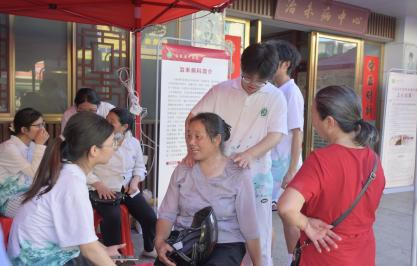 7月2日上午,团队在坛上巷社区等地开展中医药文化进社区宣讲活动,队员们向社区居民生动介绍夏季食疗养生、艾灸穴位保健等中医保健知识,通过手册介绍、提问互动等方式激发青少年对中医药知识的兴趣。队员们与居民一同练习传统功法八段锦,普及中医养生方法,提高居民健康素养。