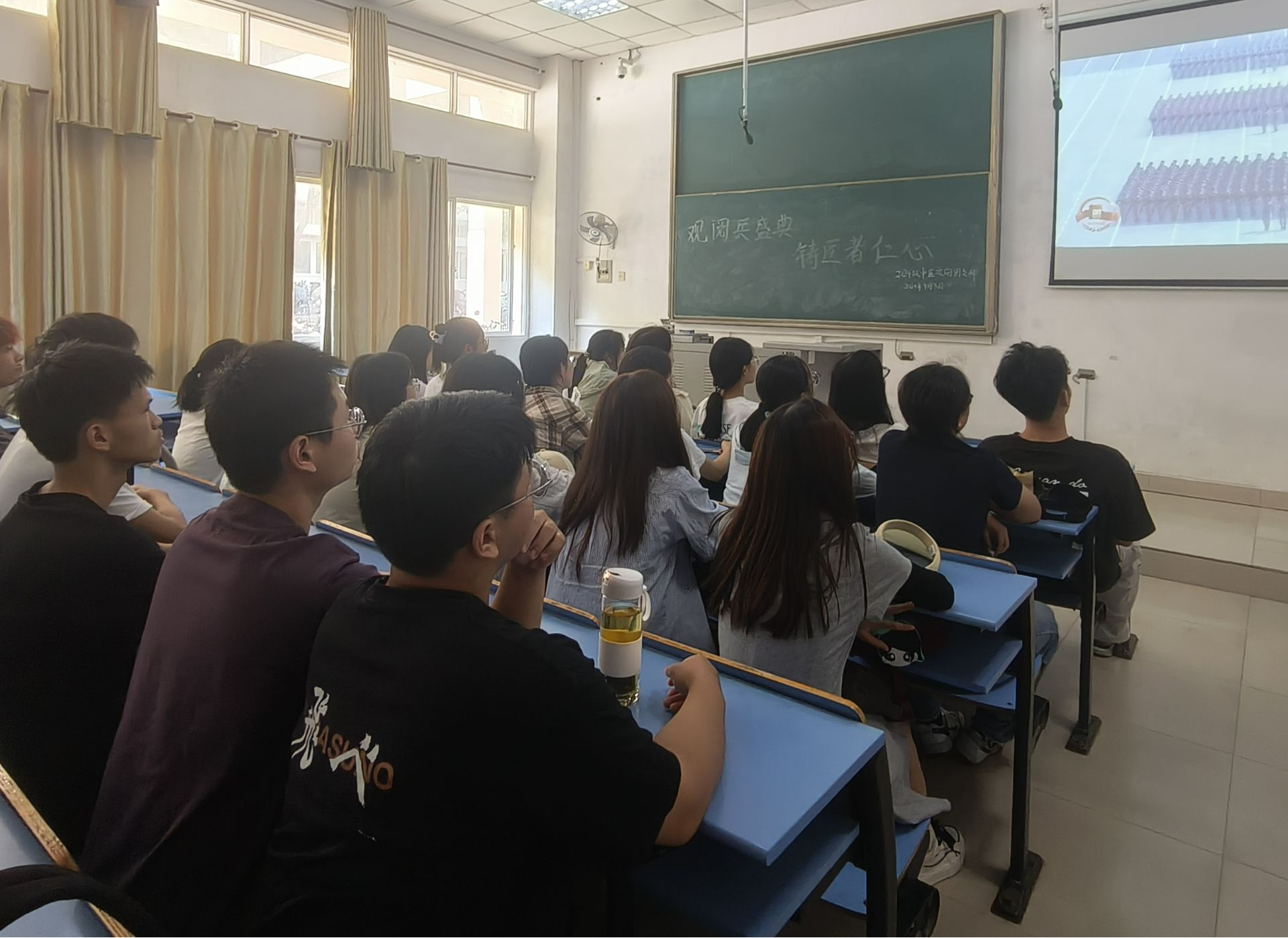 观看过程中,同学们神情专注,情绪高涨,被人民军队的威武雄壮和国家的繁荣昌盛深深感染。直播结束后,同学们仍久久不愿离去,自发交流观看感受,畅谈心得体会。23医检2班班长陈沅平激动不已,“今日观看阅兵,心潮澎湃,难以平复。三军列阵,铁甲生辉,铿锵步伐踏出国家威严,飒爽英姿彰显军人气魄。国之重器依次亮相,既是和平的盾牌,亦是强盛的象征。此情此景,让我深切感受到祖国的强大与团结,每一名官兵的眼神都写满忠诚与坚定。我们并非生于和平的年代,只是有幸生活在和平的国家。这份底气,来自每一位守护者的付出。致敬最可爱的人,愿以吾辈之青春,守护盛世之中华!”