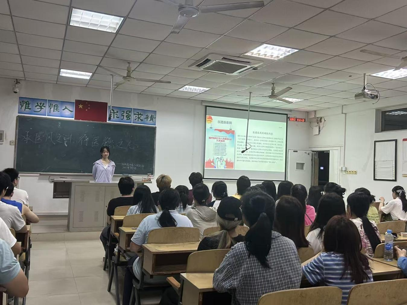 为推进医学人文教育,强化未来医务工作者的职业素养和责任担当,9月7日晚点名时间,临床医学院团委组织各班开展“承医风之训,行医德之心”主题团课学习。同学们通过学习深刻理解了医学职业精神的核心内涵,扣好职业生涯的第一粒扣子。