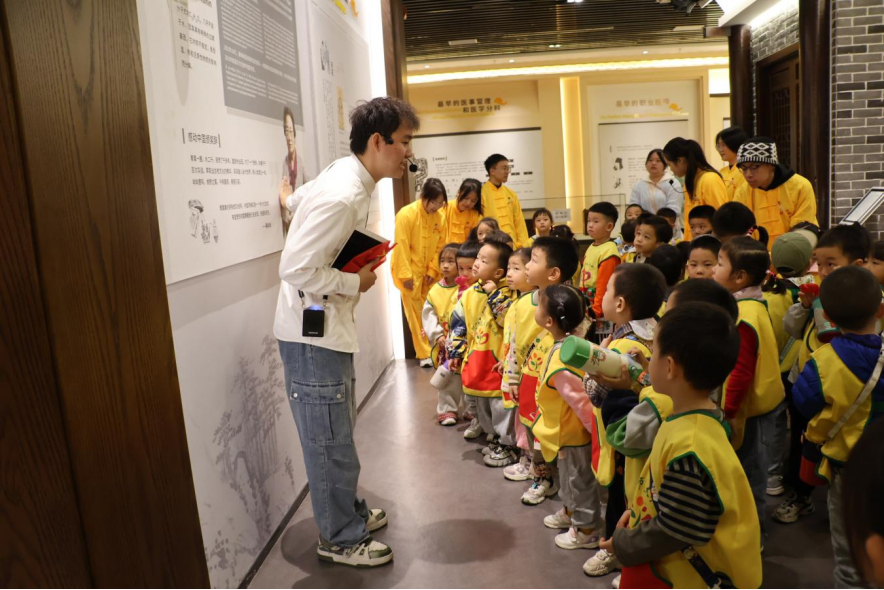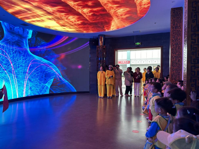 在中医药文化馆,讲解员以通俗易懂和故事化的语言介绍中医名家的传奇事迹,让孩子们对“望闻问切”有了初步认知。