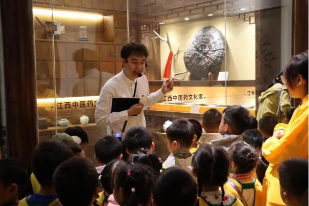 “玫瑰茄颜色漂不漂亮、桂花香不香;小朋友们吃过冰糖葫芦吧,这是山楂,可以消食化积;这是菊花,能清热明目……”10月28日下午,在江西科技师范大学幼儿园中班、大班的教室里,来自临床医学院团委的志愿者手持中药材和中草药植株,用生动的语言向孩子们讲解常见药材的功用。通过认颜色、辨香味,听声音等激发幼儿的兴趣,孩子们睁大眼睛,好奇地触摸药材的形状、嗅闻独特的气味,不时发出惊叹。志愿者从生活当中切入,用童趣语言讲述生姜、大葱、无患子等常见药材的功效和用途,多感官感知中药魅力。