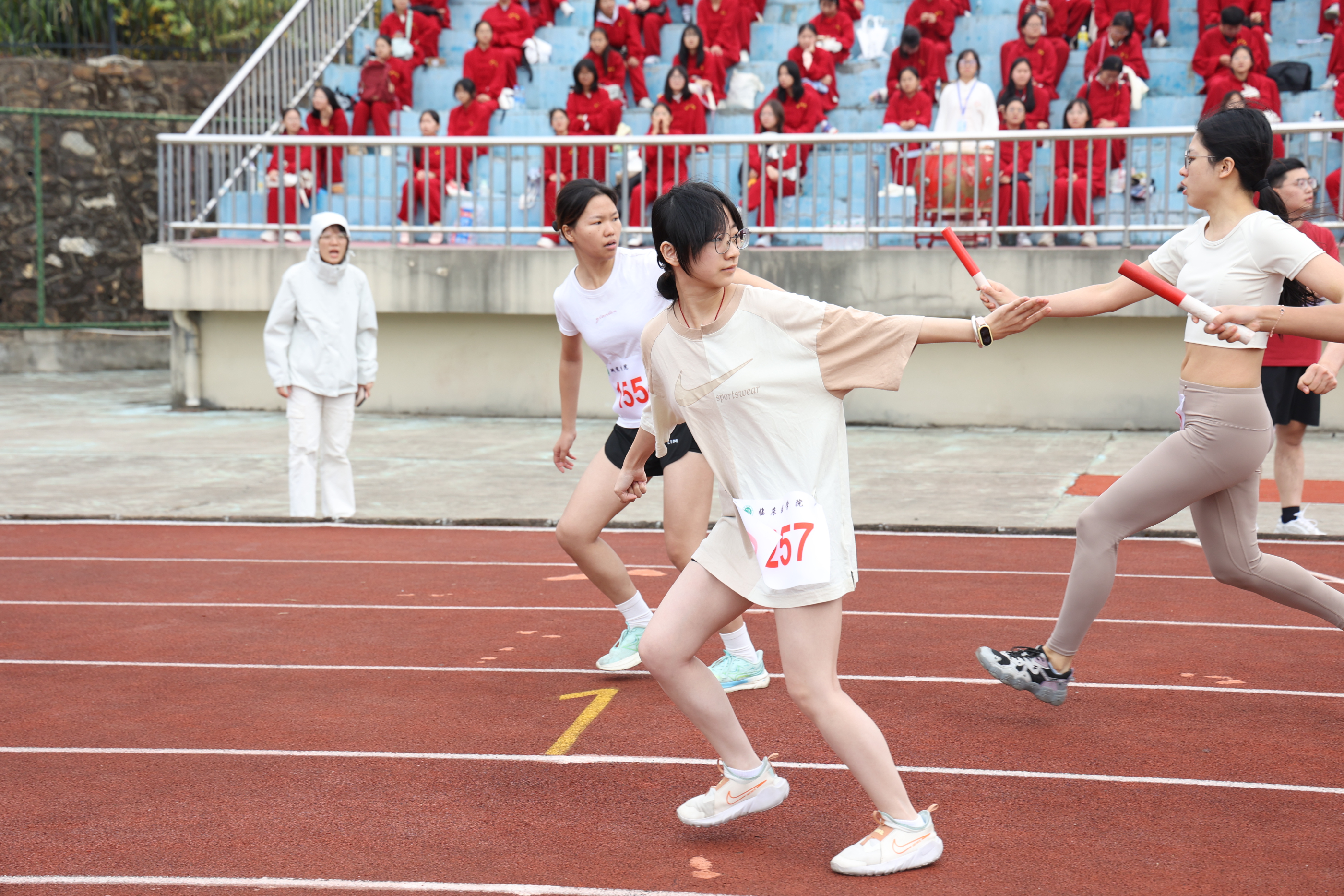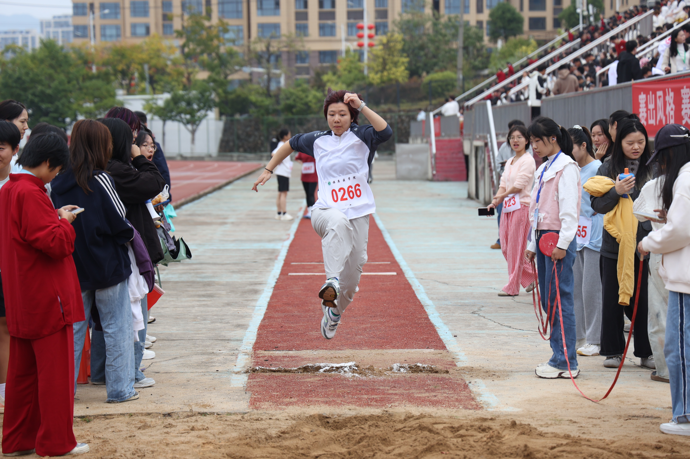 赛道竞风流,场下见温情。外场,临床学子忙碌的身影随处可见。他们为运动员及时递上清水与补给,用精准的推拿手法为运动员缓解肌肉酸痛,以无微不至的关怀成为最可靠的后勤保障。内场,临床学子组成的啦啦队是最坚实的后盾。他们击鼓呐喊,声震云霄,为领先者喝彩,也为坚持者鼓劲,用最真挚的热情,为每一位拼搏的健儿注入力量。这一刻,附属医院(临床医学院)心手相连,共同铸就了团结一心、众志成城的壮丽画卷。