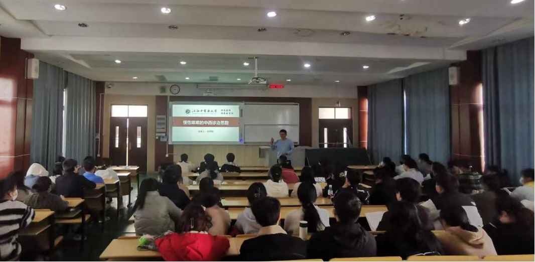 12月1日下午,在阳明教室503举办了实习生学术专题讲座,本次讲座邀请了老年病科张同照老师进行授课。本期专题讲座主题--《慢性咳嗽的中西诊治思路》。张同照老师以临床病例为导入,通过患者病史及主诉,提问式引导实习生们发散思维,再从慢性咳嗽的临床诊治现状、慢性咳嗽的概念及分类、西医诊断依据等方面进行了详细的讲解。