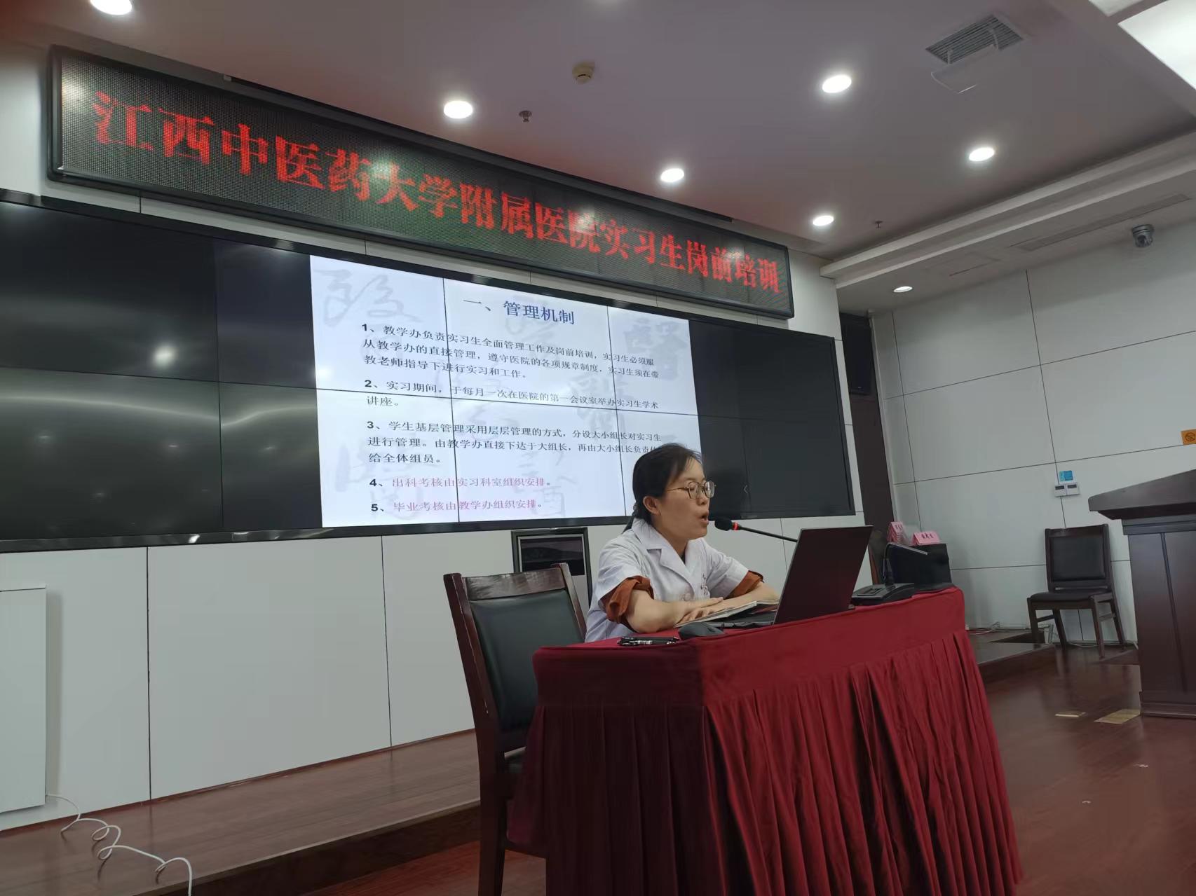 为强化实习生的规范化管理,提高培养质量,7月10日,金瓶梅电影 在东湖院区综合大楼第一会议室举办了实习生岗前培训,来自江西中医药大学、河南中医药大学共167名实习生参加了本次培训。