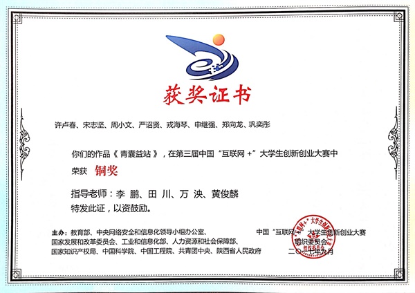 第三届中国“互联网+”大学生创新创业大赛铜奖