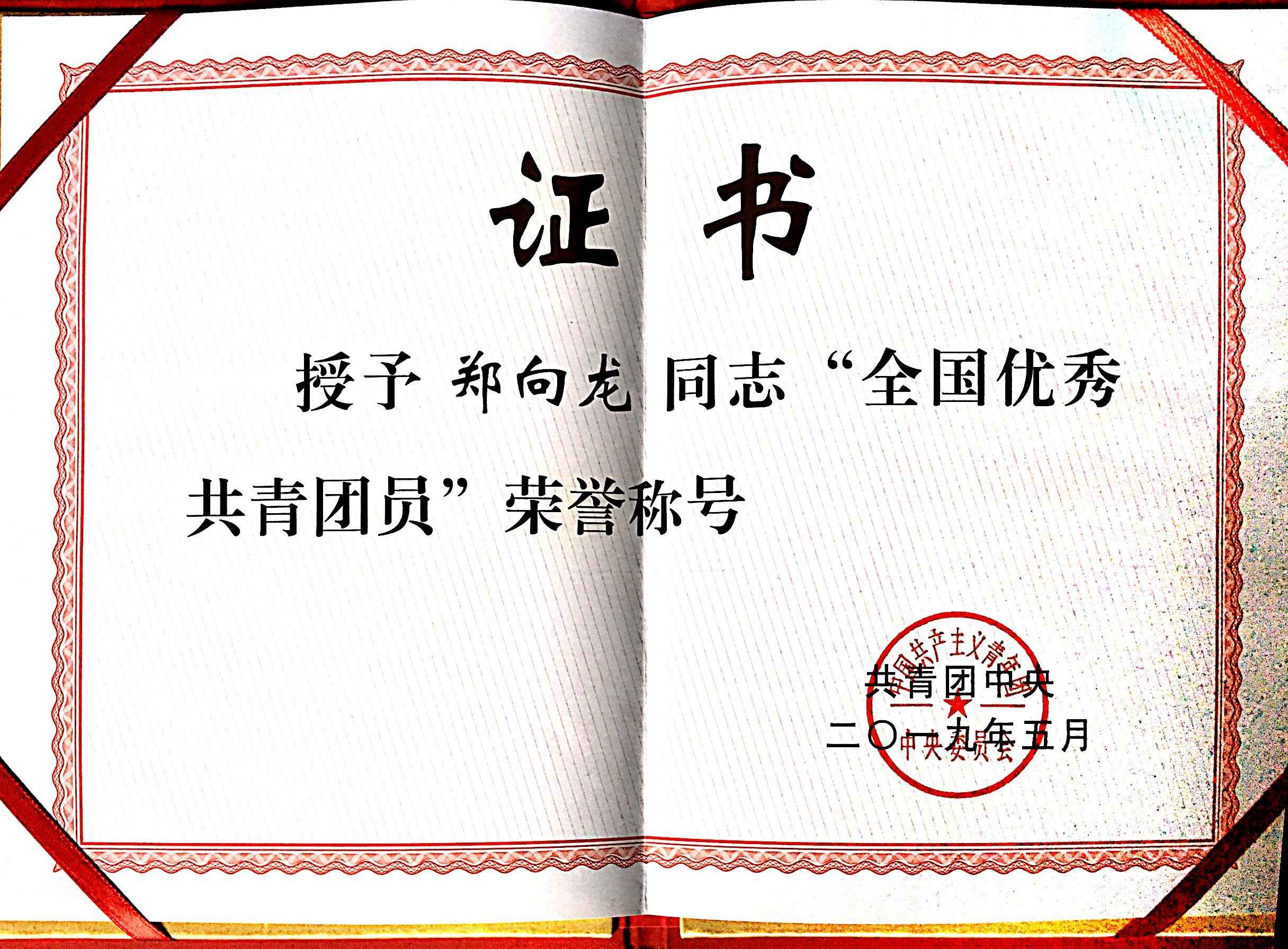 郑向龙获全国优秀共青团员