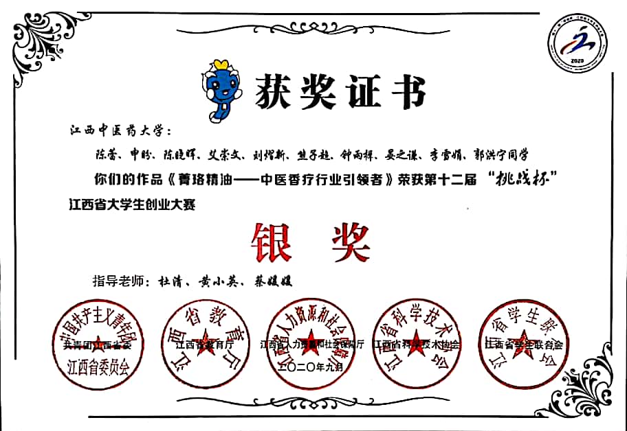 2020.9第十二届“挑战杯”江西省大学生创业大赛银奖