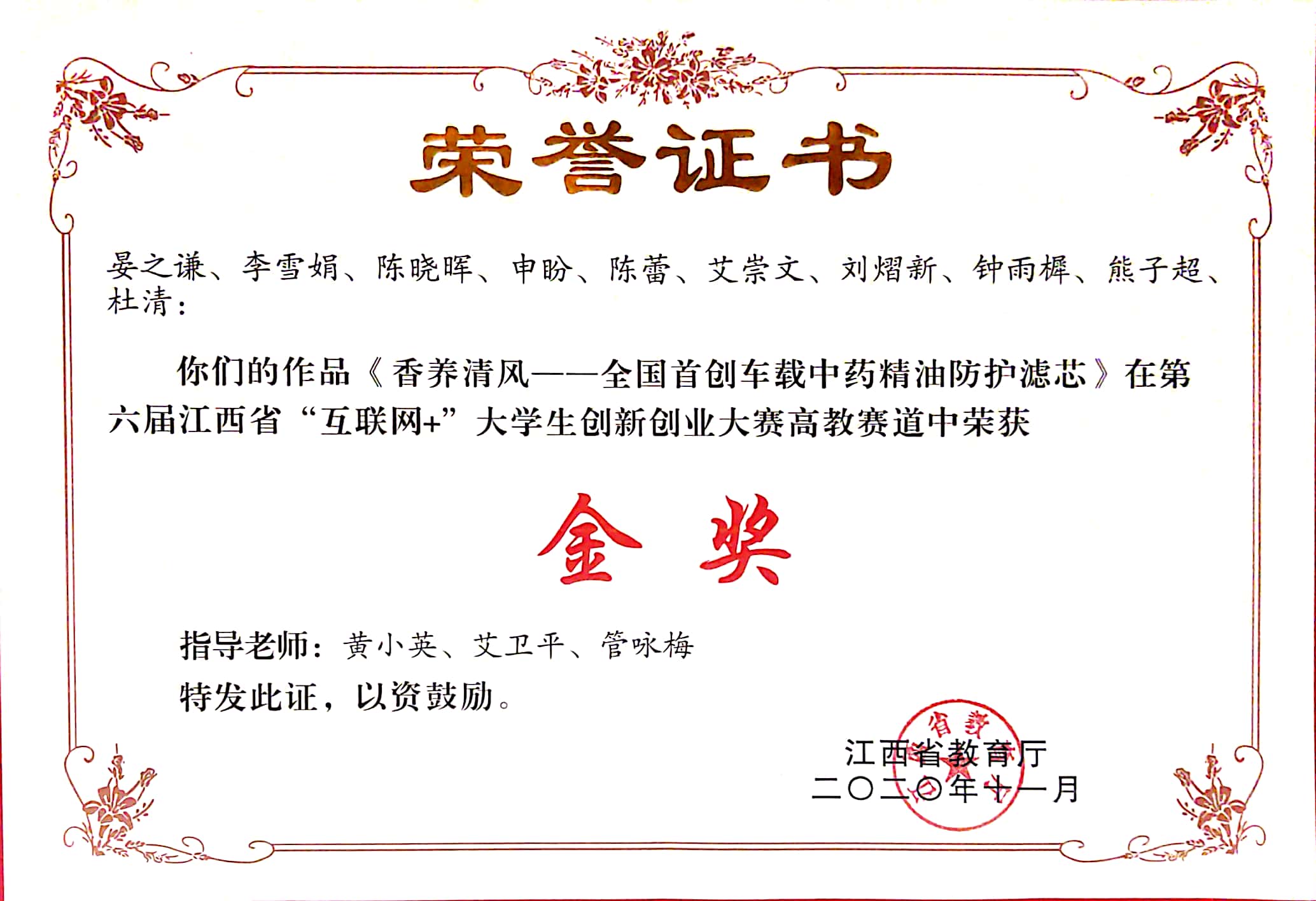 第六届江西省“互联网+”大学生创新创业大赛高教赛道金奖