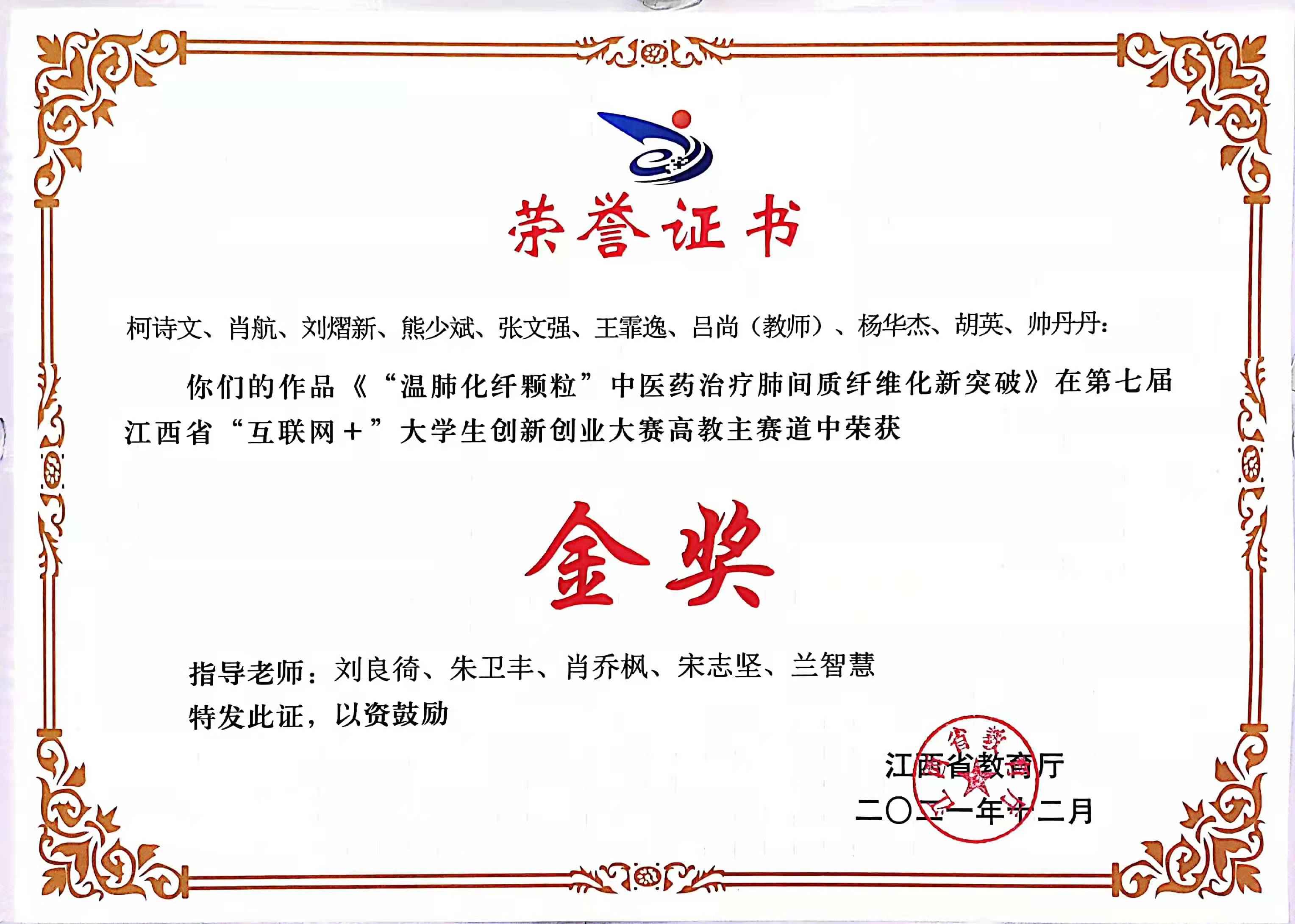 第七届江西省“互联网+”大学生创新创业大赛高教主赛道金奖