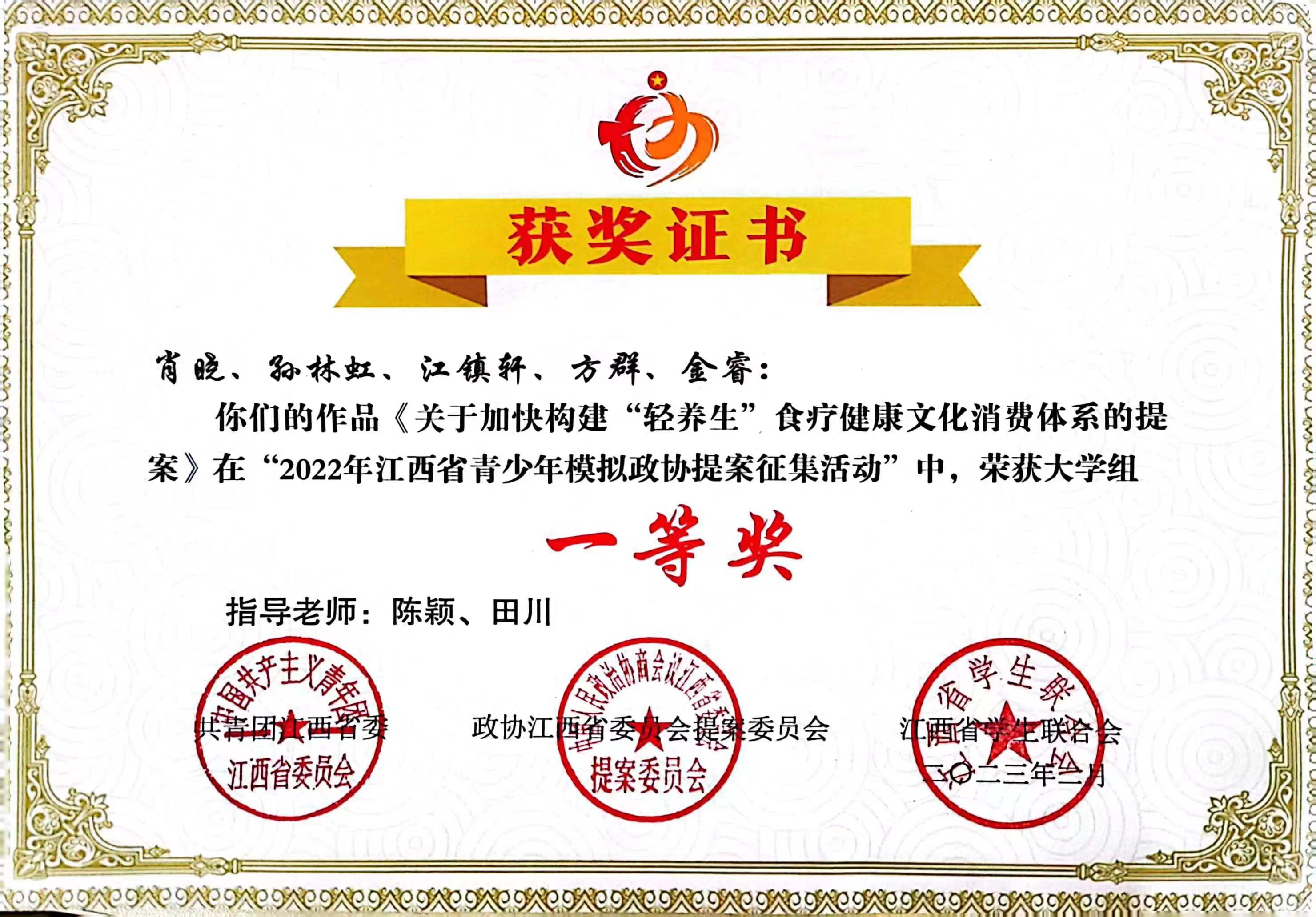 2022年江西省青少年模拟政协提案征集活动一等奖