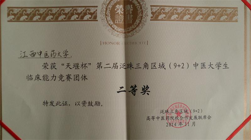 第二届泛珠三角区域中医大学生临床能力竞赛团体二等奖