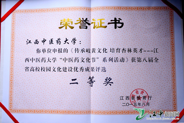 《传承岐黄文化 培养杏林英寸——江西中医药大学”中医药文件节”系列活动》获第八届全省高校校园文化建设优秀成果评选二等奖