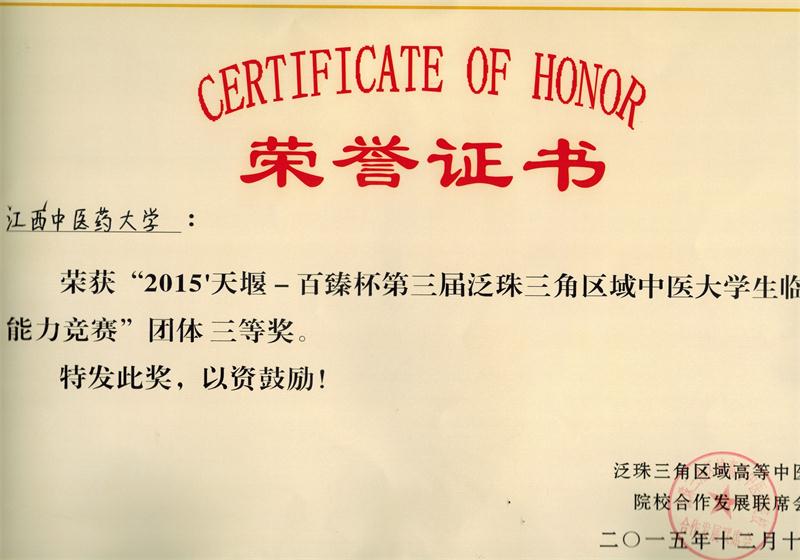 2015年泛珠三角临床能力竞赛获奖证书(集体)