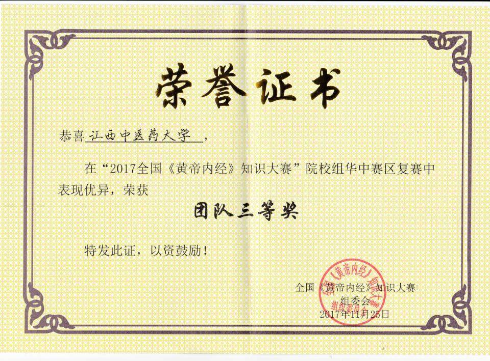 全国《黄帝内经》知识大赛华中赛区复赛团队三等奖