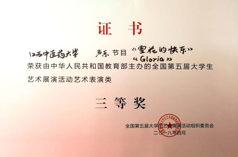 江西省第九届大学生艺术展演活动本科甲组合唱一等奖奖牌