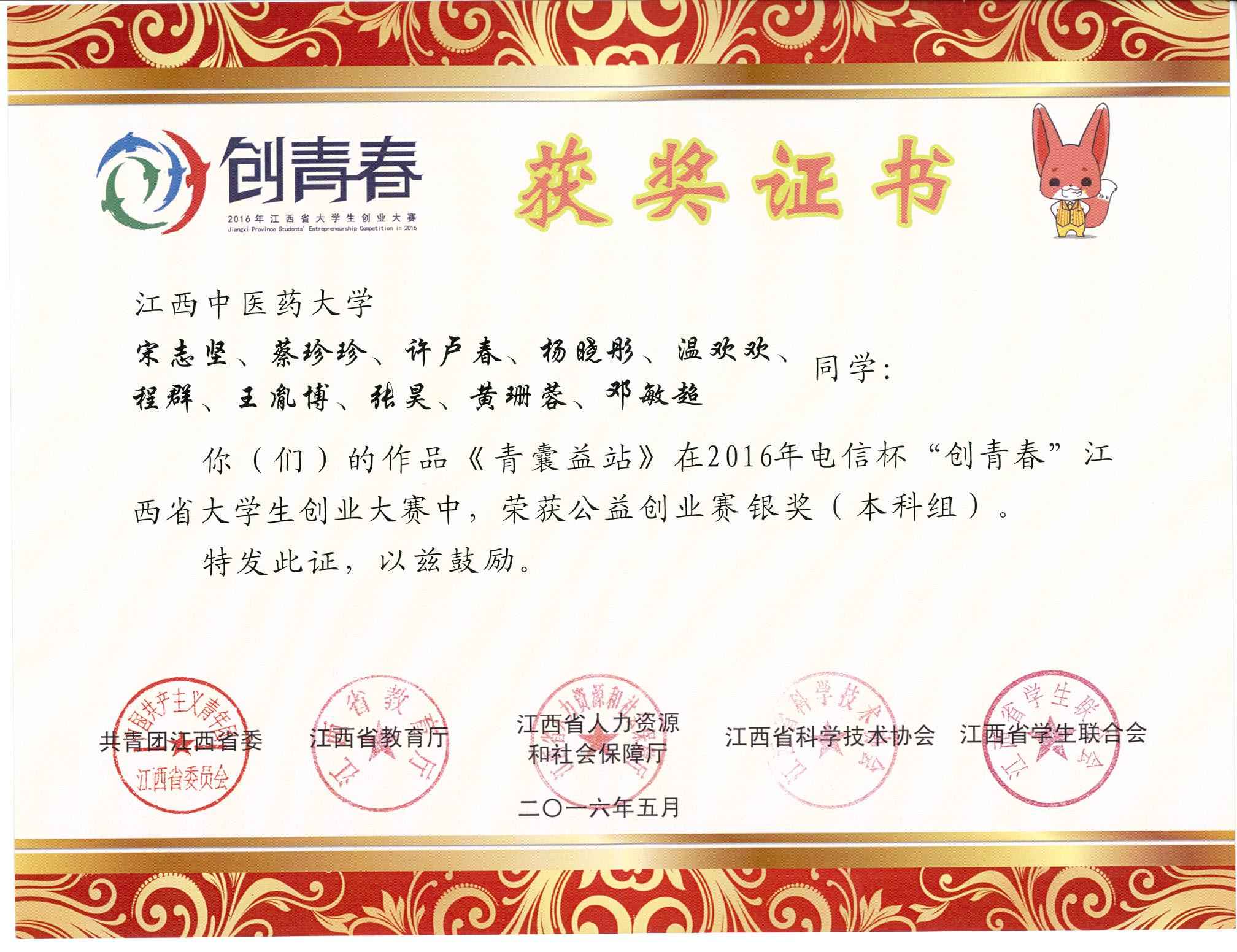 江西省2016“创青春”挑战杯银奖