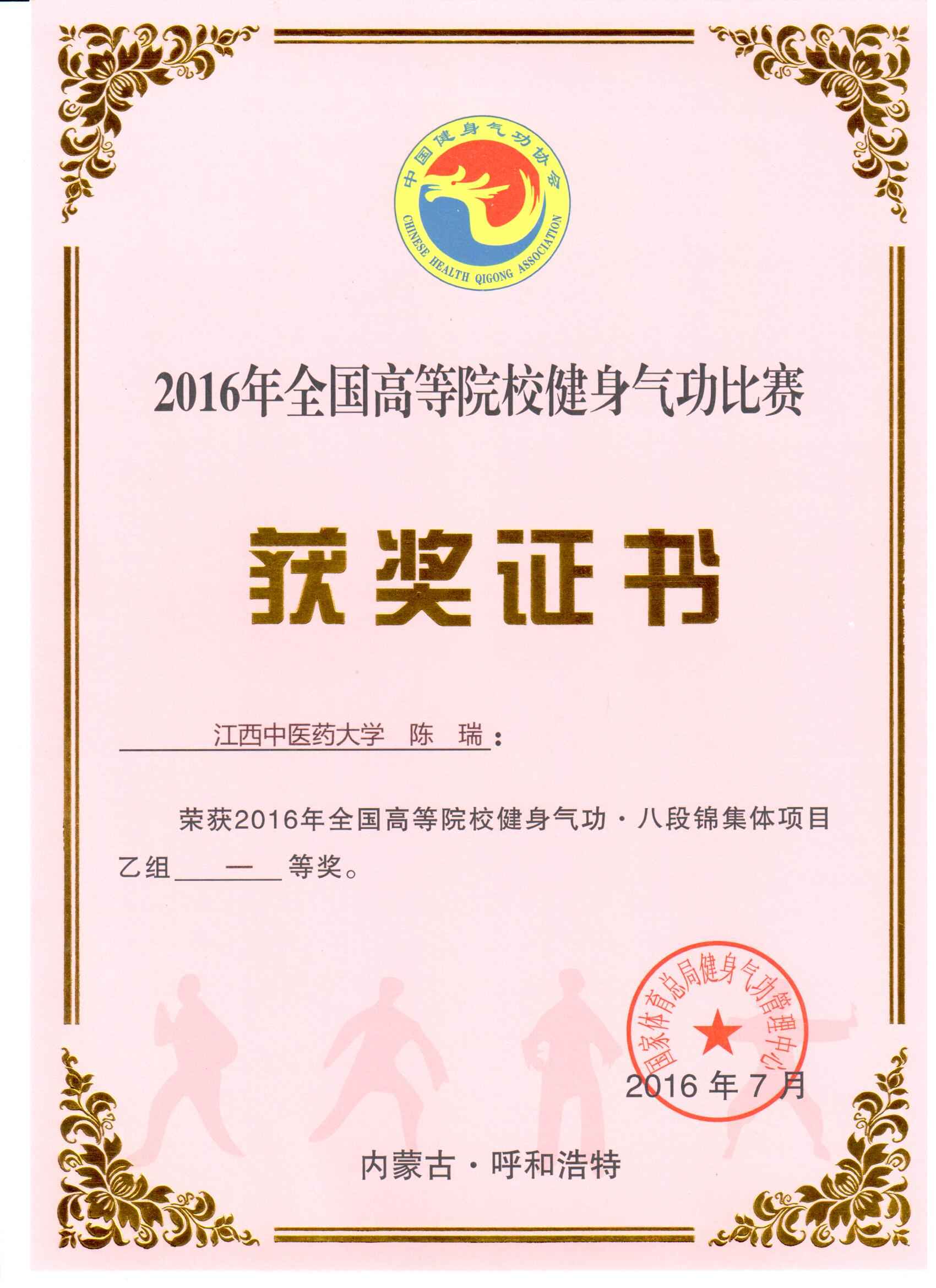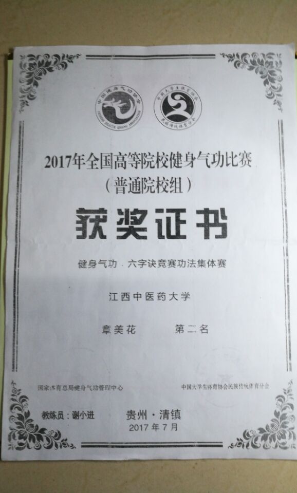 2016年全国高等院校健身气功比赛六字诀二等奖