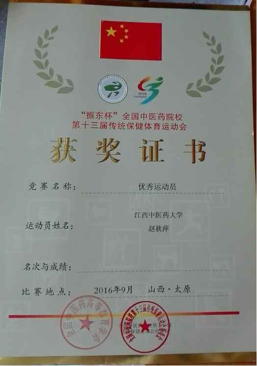 “振东杯”全国中医药院校第十三届传统保健体育运动会优秀运动员