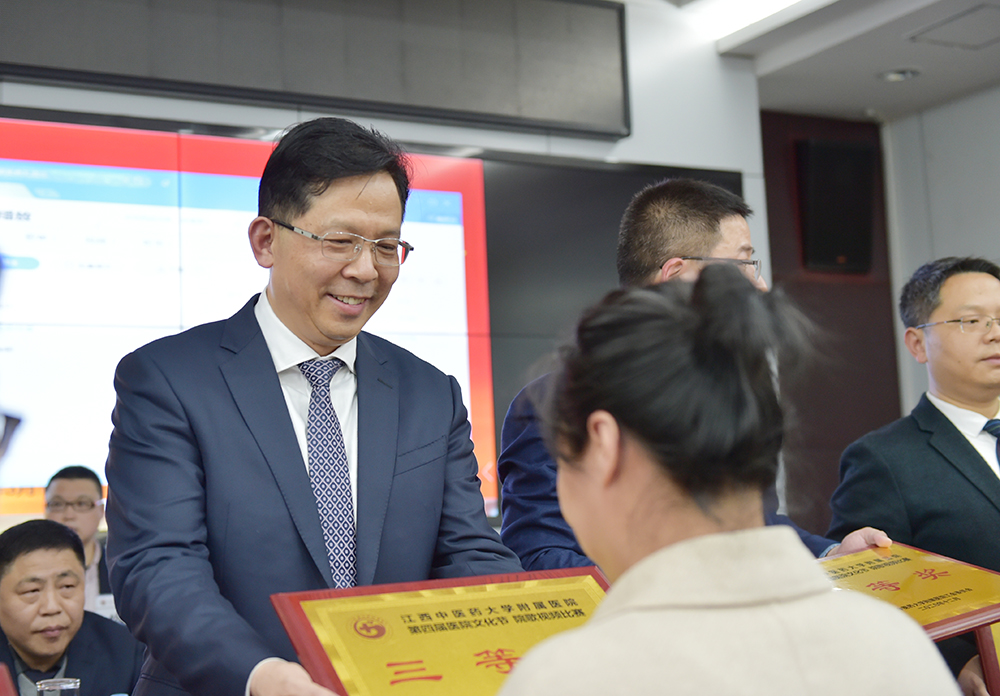 第四届文化节“大爱无疆”院歌视频比赛》颁奖活动,为获奖科室颁发奖牌。