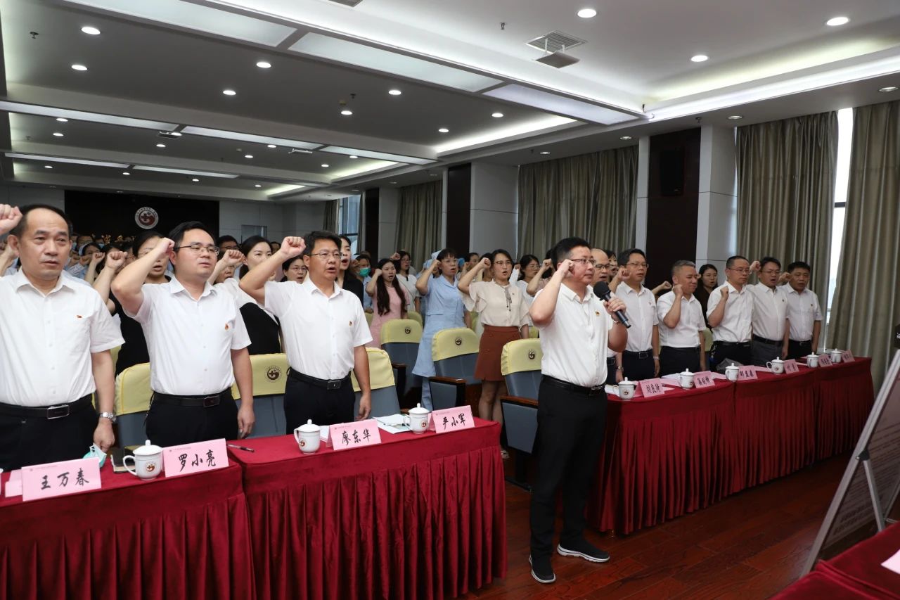 党委书记严小军带领新党员进行入党宣誓,老党员重温入党誓词)
