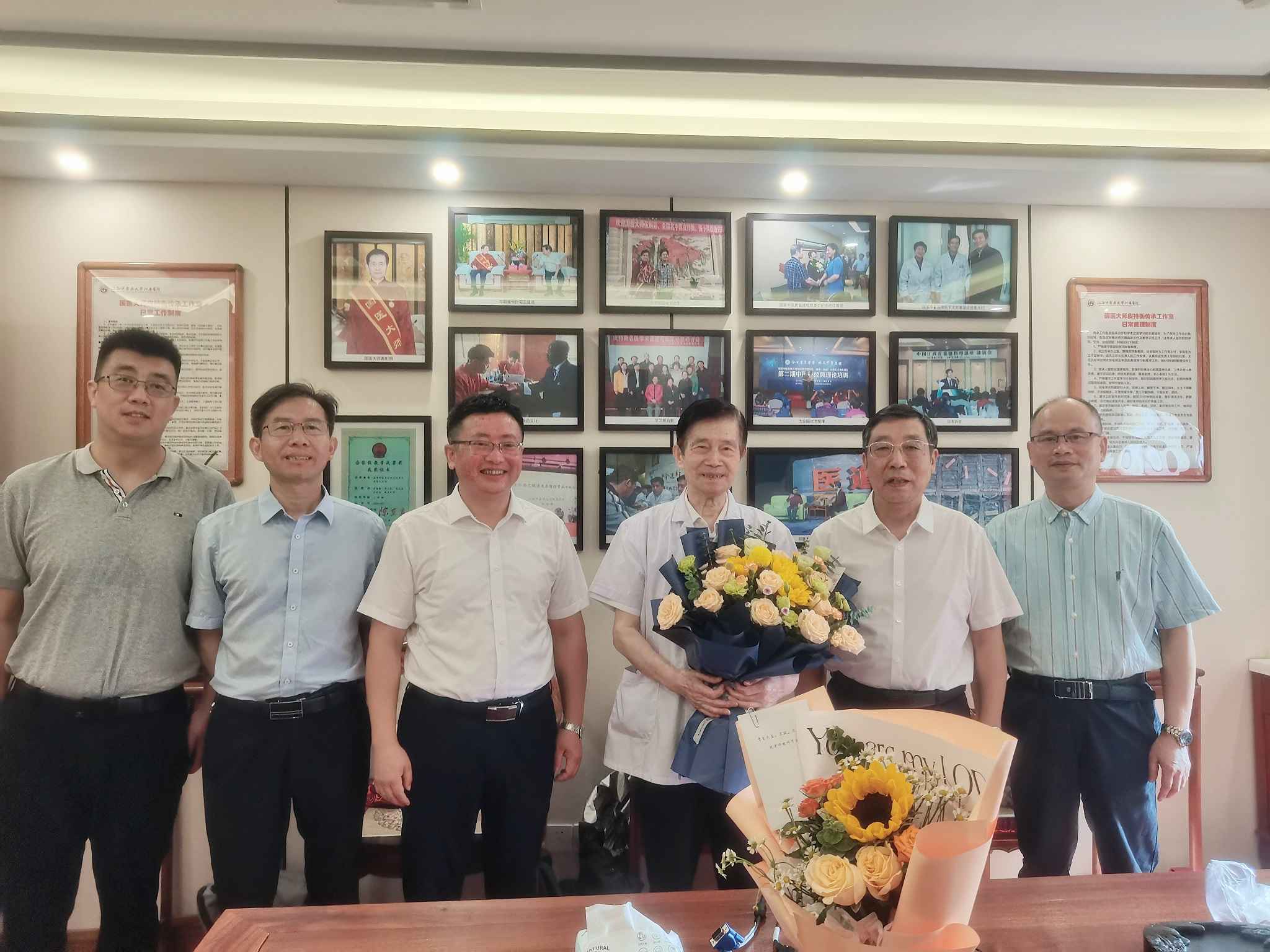 在第39个教师节到来之际,9月8日上午,学校党委书记徐兰宾在学校党委委员、副校长、附属医院(临床医学院)党委书记严小军等的陪同下,来到附属医院,亲切看望国医大师皮持衡教授,并向全校教师致以节日祝贺,祝大家教师节快乐!附属医院党委副书记、院长,临床医学院院长刘良徛等陪同。