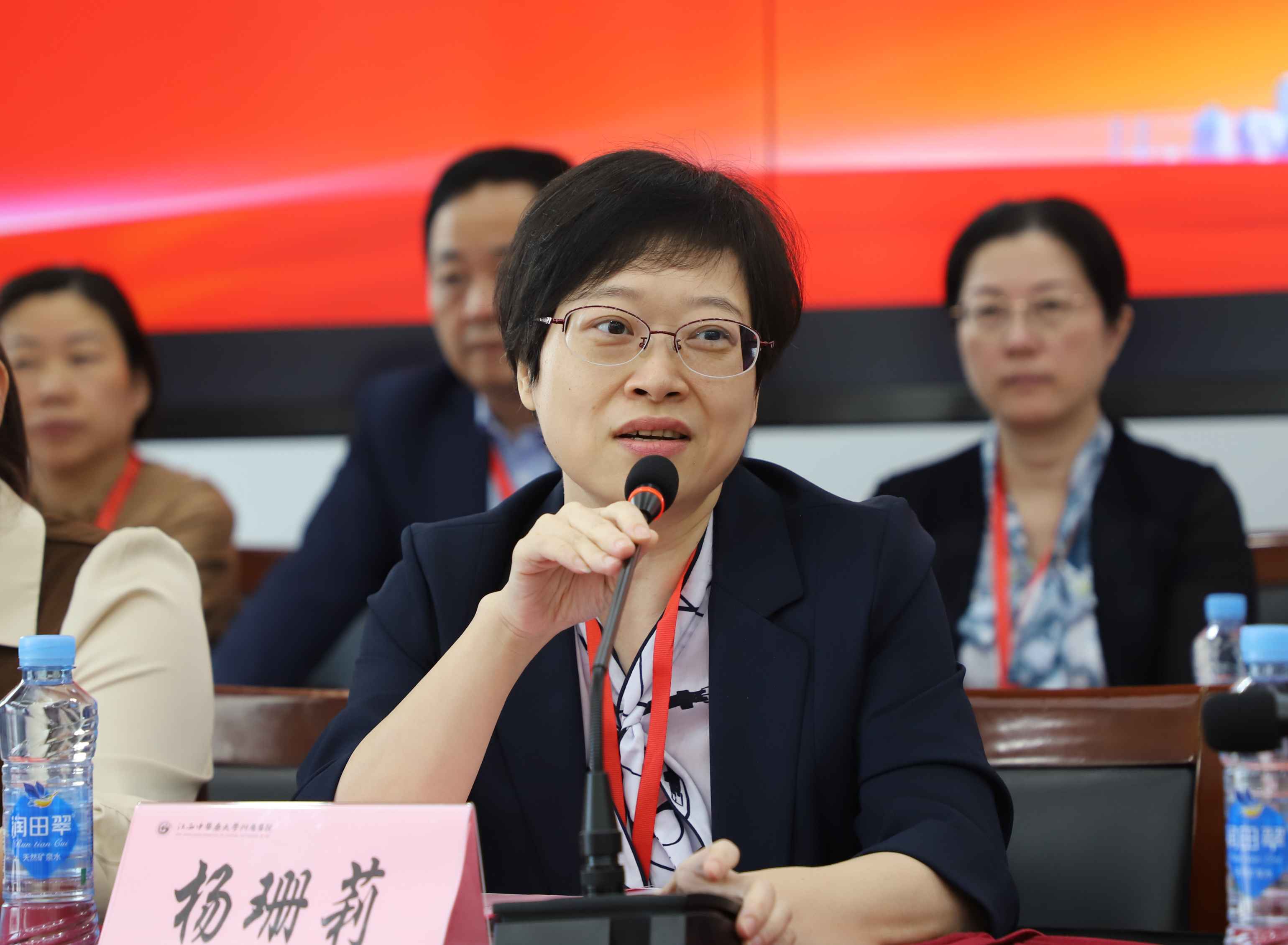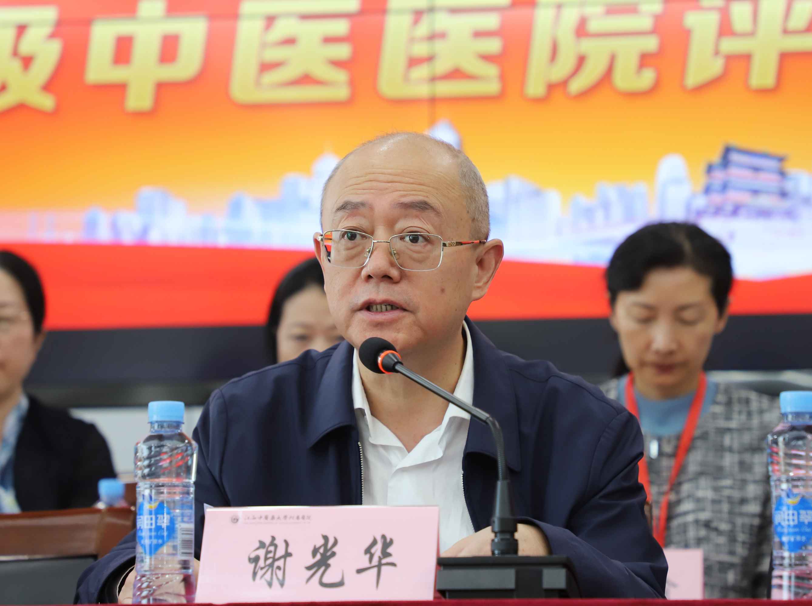 (三级中医医院评审专家组组长、福建中医药大学附属康复医院院长杨珊莉介绍评审工作安排。)