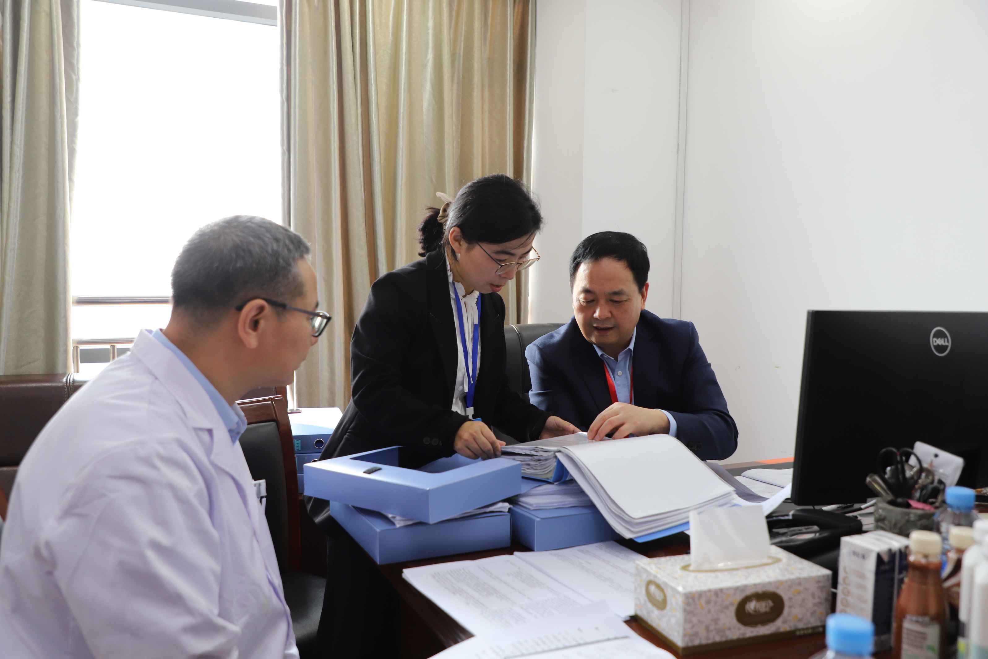 汇报会后,评审专家分为管理组、临床科室组、重点专科组、药学组、护理组、医疗组、检验输血组、病理组、影像组、院感组、党建组,通过查阅资料、实地考察、操作考核、抽查病历、访谈人员等方式分组对医院进行了全方位的综合评审工作。