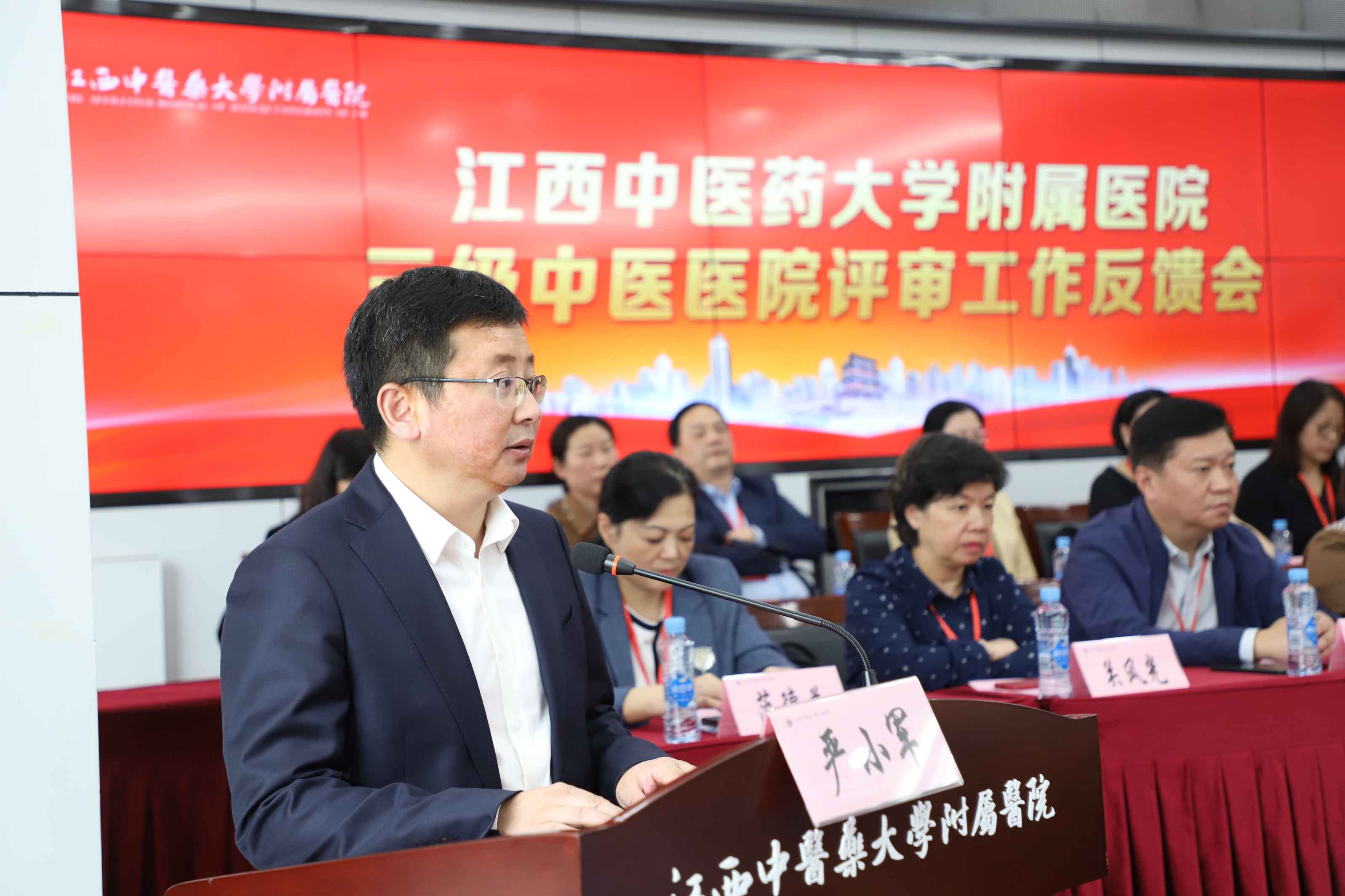 (江西中医药大学党委书记徐兰宾出席附属医院三级中医医院评审工作汇报会并致辞。)