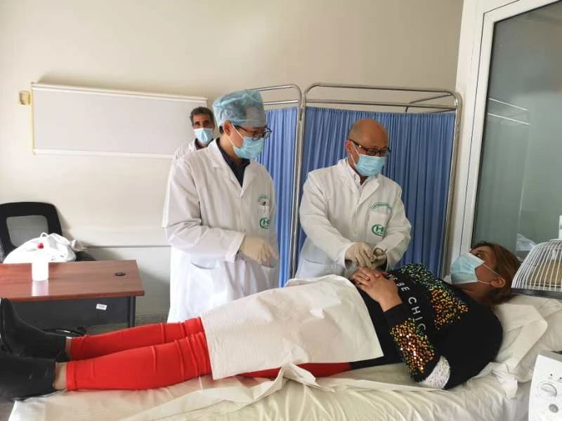 (徐杰在马尔萨国家公立医院内的中国针灸中心为当地感染新冠肺炎的患者使用针灸治疗)