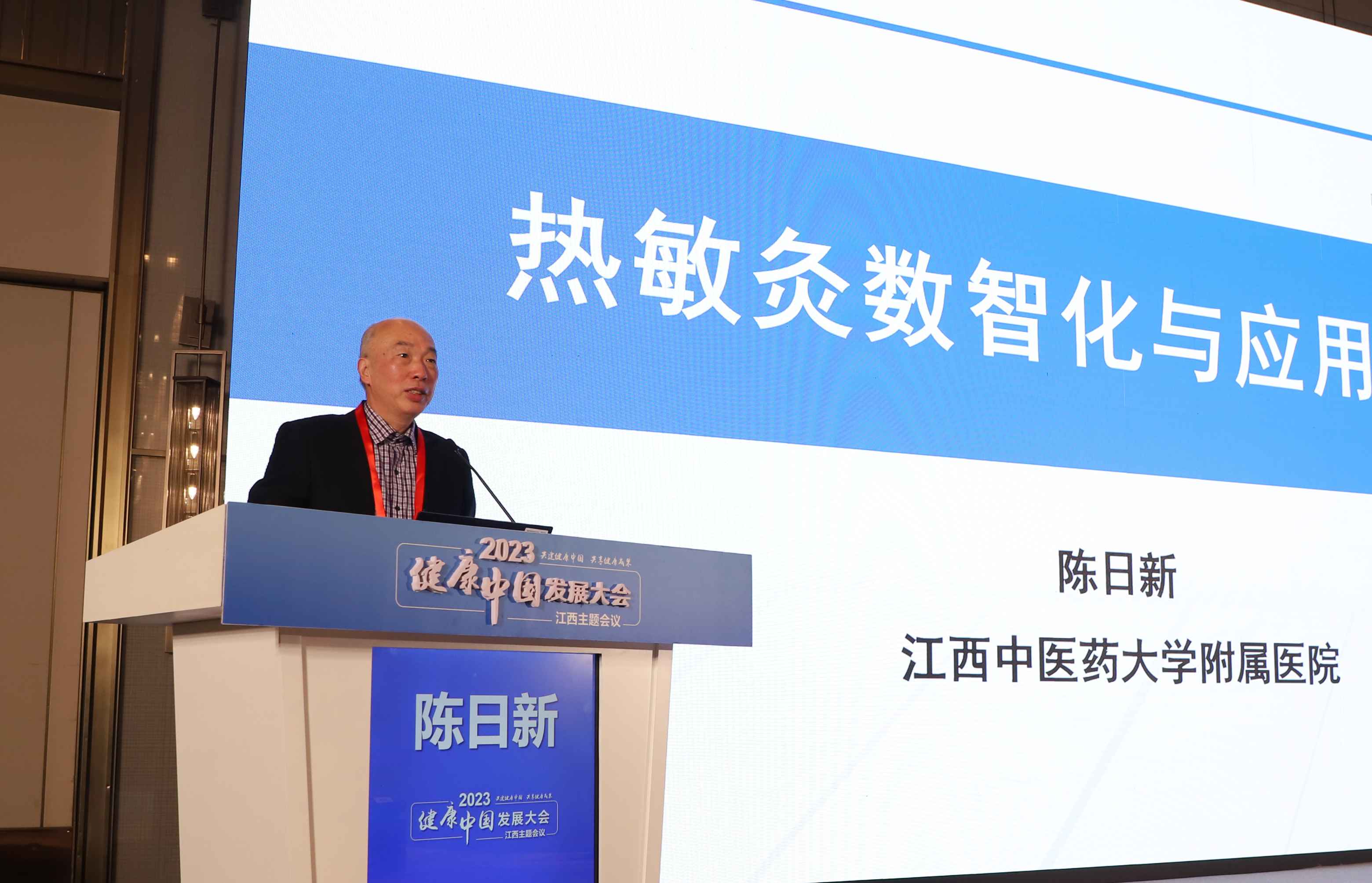 (江西中医药大学首席教授陈日新作了题为“热敏灸数智化与应用前景”演讲。)