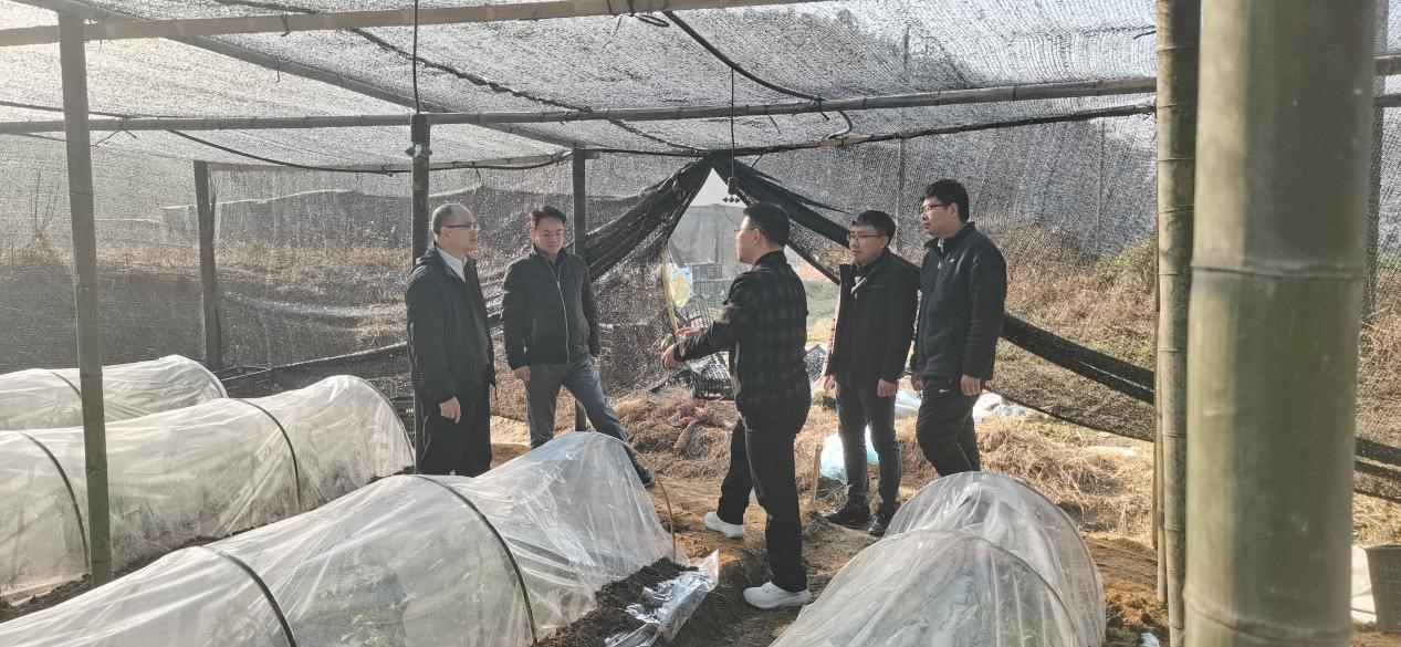 刘良徛一行调研了乡村振兴驻村点山香圆种子种苗繁育基地和山香圆种植示范基地建设情况,实地查看种苗繁育大棚建设进度和林下山香圆生长状况,详细了解山香圆叶的产业规划和市场销售等情况。
