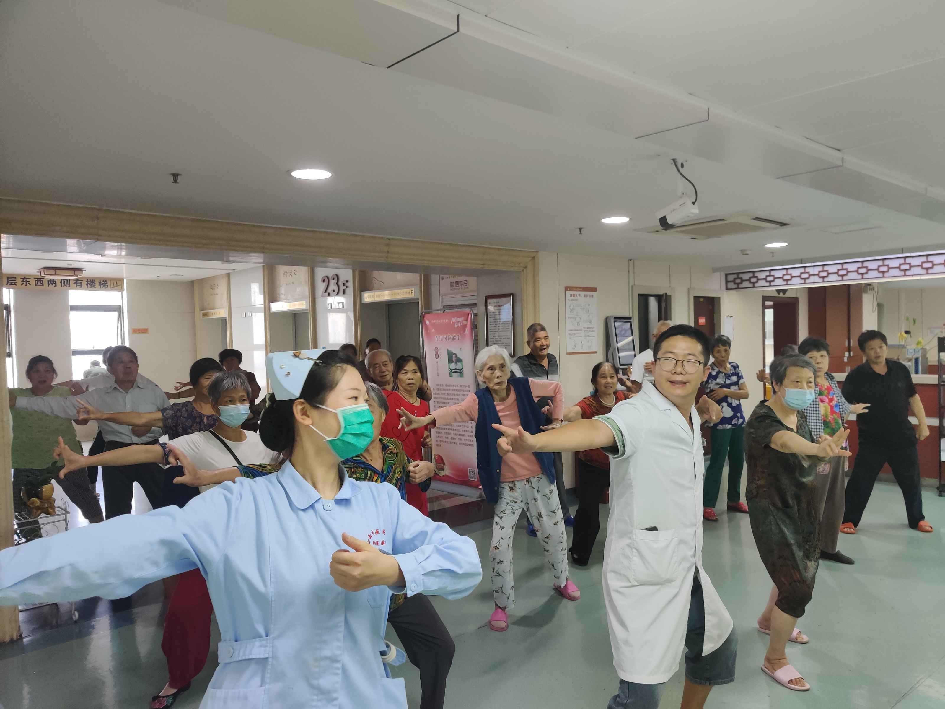 日常带领老年患者做八段锦、养生操