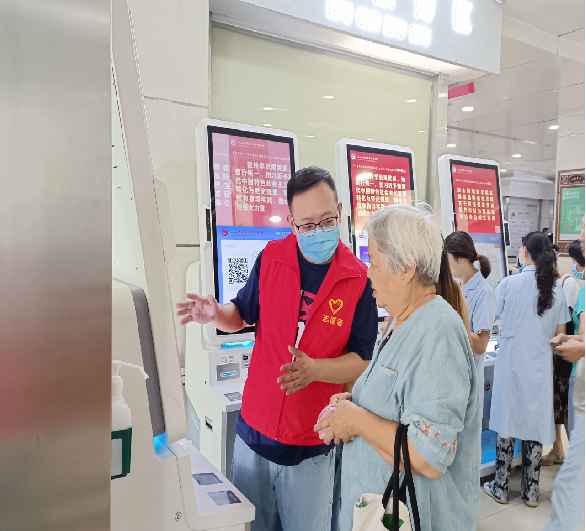 “红马甲”、导诊专员帮助老年患者进行自主缴费