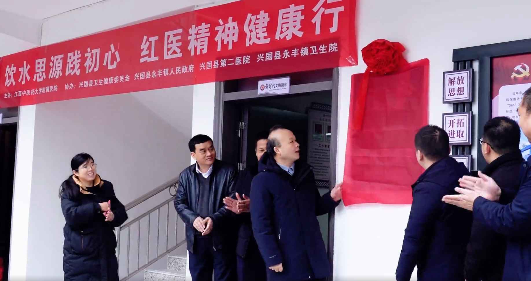 义诊当天,船溪村隆重举行了“陈焕文博士工作站”“船溪中医馆”揭牌仪式,陈焕文教授与兴国县委常委、副县长任家胤共同揭牌。