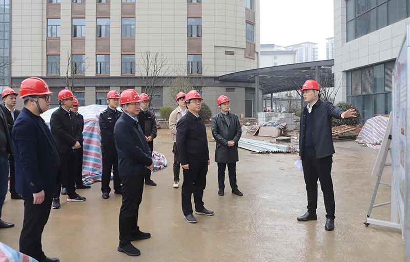 西湖院区建设工地,实地调研推进项目建设。江西中医药大学副校长、附属医院党委书记严小军、副院长杨卫星等陪同调研。