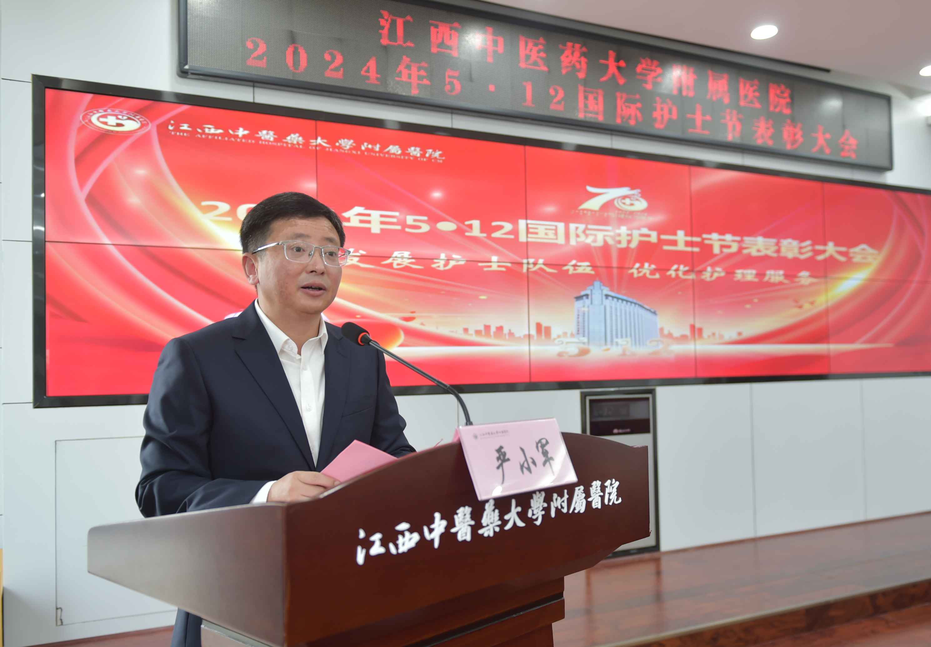 召开“5·12”国际护士节表彰大会。学校党委委员、副校长、附属医院党委书记严小军,医院领导廖东华、翁剑锋、罗小亮、邵益森、杨卫星、王万春、付勇、杨安金、黄厚生、杨军平、邹浪出席。部分职能科室负责人、受表彰人员及护士代表200余人参加大会。会议由医院党委委员、副院长翁剑锋主持。
