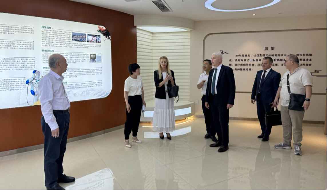 下午,代表团一行来到西湖院区,对即将全面投入使用的新院区的就医环境赞不绝口。专家们首先来到热敏灸展厅,热敏灸创始人陈日新教授向外宾们详细介绍了热敏灸的功效和热敏灸机器人,在了解了这项结合中医灸法和现代化机器人技术的创新项目后,也让外籍专家们对中医现代化的发展方向有了更加深刻的认识。