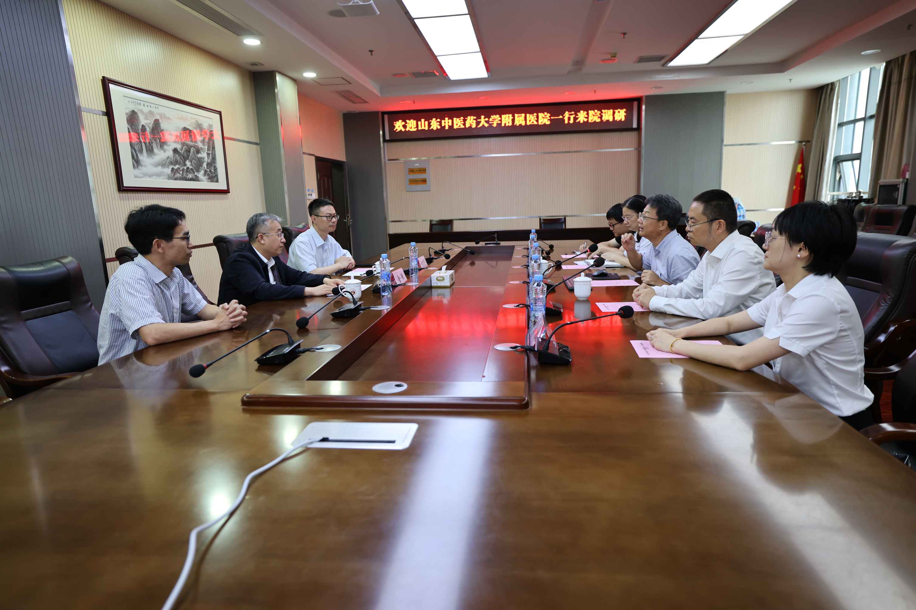 座谈会由廖东华主持,他首先代表医院对山东中医药大学附属医院领导表示欢迎。随后,介绍了医院发展历程以及近年来医院在教育教学、科学研究和人才培养等方面取得的成果、专业建设和人才培养模式等相关情况。座谈会上,与会人员就医院运营管理及专科建设等方面进行了深入的讨论。