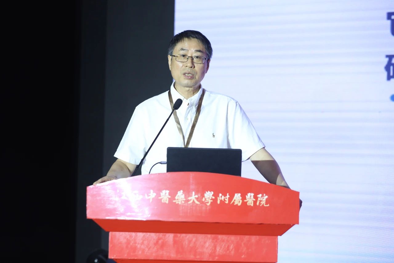 (张其成教授在大会作主题报告。)