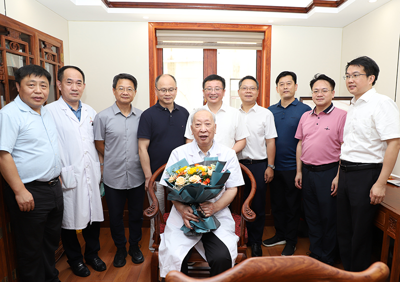 (医院领导看望慰问国医大师皮持衡教授。)