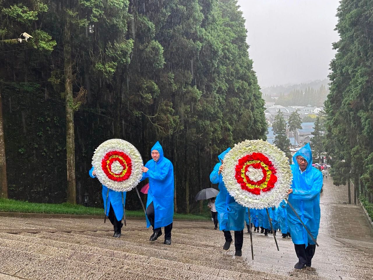 怀着崇高的敬意,全体学员来到井冈山革命烈士陵园,为革命先烈们敬献花圈。