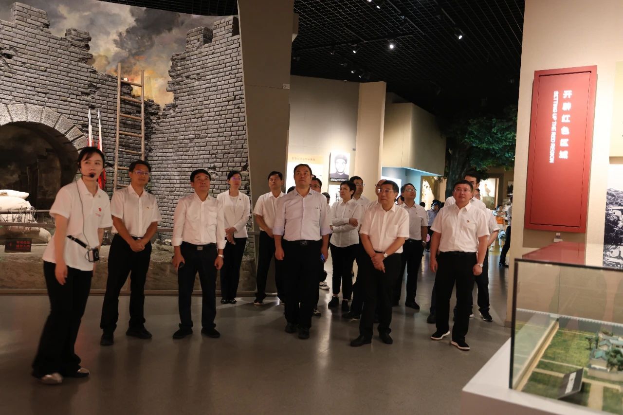 在井冈山革命博物馆,全体学员接受了一次生动的革命传统教育。作为我国第一个地方性革命史类博物馆,馆内基本陈列共有七个展室,生动再现了毛泽东、朱德等老一辈无产阶级革命家在井冈山开辟了第一个农村革命根据地,点燃了“工农武装割据”的星星之火。吉安市副市长、井冈山管理局党工委书记、井冈山市委书记廖东生等陪同。