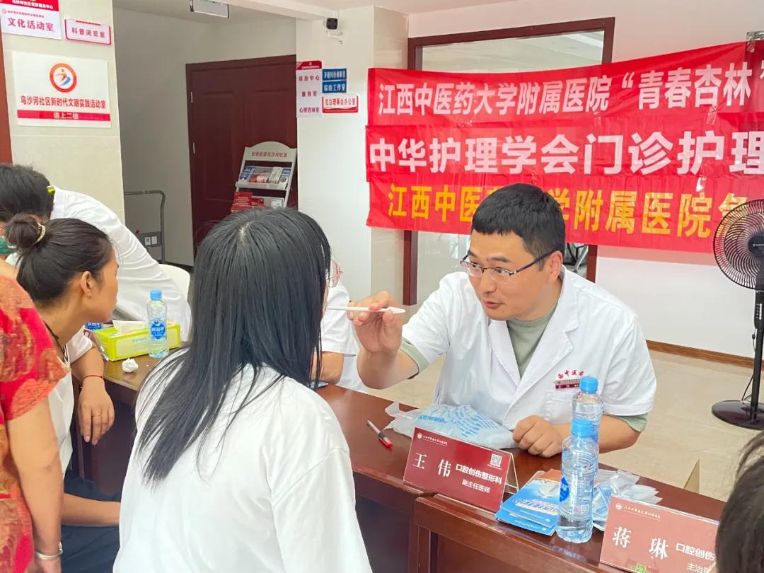 (9月20日金瓶梅电影 联合口腔创伤整形科青年文明号集体组织眼科和耳鼻咽喉科的青年专家组成大五官科,前往市新建区乌沙河社区开展全国爱牙日主题“青春杏林”义诊活动。)